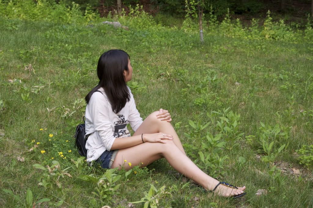 (E hyphen world gallery top, CLEF DE SOL denim shorts, Thrifted back pack, Banana Republic sandals, H&M and Forever 21 bracelets and xC watch, a gift from my mom)