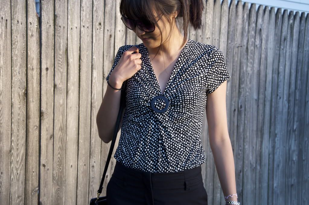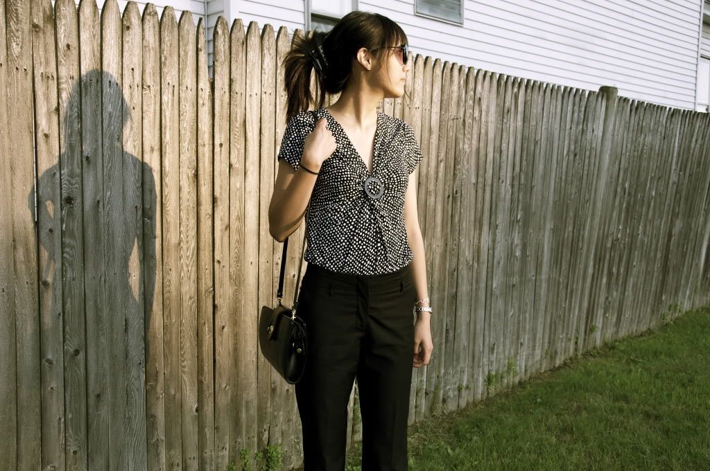 After work, I went to Savers for some thrift shopping with my friends - which is why my outfit today is my work clothes, excluding the bag. Because I went to Savers last week I did not find anything that moved me, so I ended up spending that money on buying Thai iced tea boba. But my friends found some great clothes and shoes (she even got a pair of beautiful pumps for $3!!!!! Crazy price) that I was happy and jealous of her at the same time. One more day of work and my weekend will be here. I really need to invest in beige/white work pants first though.